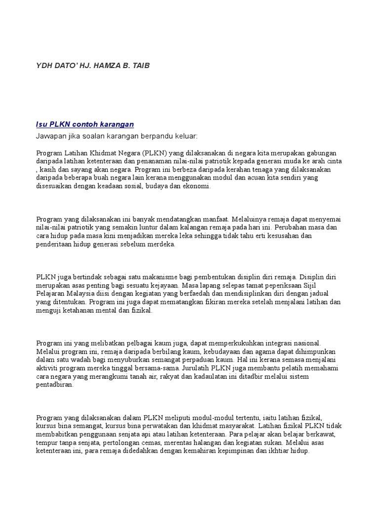 Teras program latihan khidmat negara adalah untuk membentuk sebuah masyarakat yang berdisiplin, bersemangat waja, berkeyakinan diri, setia kepada negara, sentiasa bersedia menghadapi sebarang cabaran dan dugaan serta untuk memupuk kerjasama dan perpaduan dikalangan pelbagai. Pada bulan ogos tahun 2018, kabinet malaysia mengambil keputusan untuk memansuhkan salah satu program yang telah dilaksanakan bertahun lamanya, iaitu program latihan khidmat negara (plkn) yang diperkenalkan sejak tahun 2004. Plkn stands for program latihan khidmat negara (malaysian national service program). 10 ziyaretçi program latihan khidmat negara ziyaretçisinden 1 tavsiye gör. And btw, i extracted two of these.